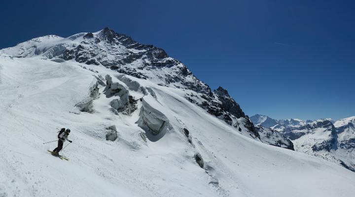 Belle matinée pour une virée express à l'aiguille des glaciers. Conditions plutôt faciles sur l'arête franco italienne : neige dure ou croutée par le soleil.
