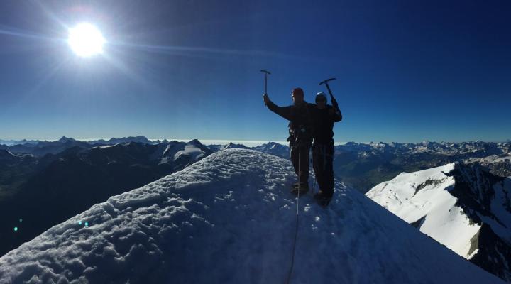 Très beau moment seuls au sommet du Mont Pourri avec Gabin 16 ans et Marius son papi 72 ans.