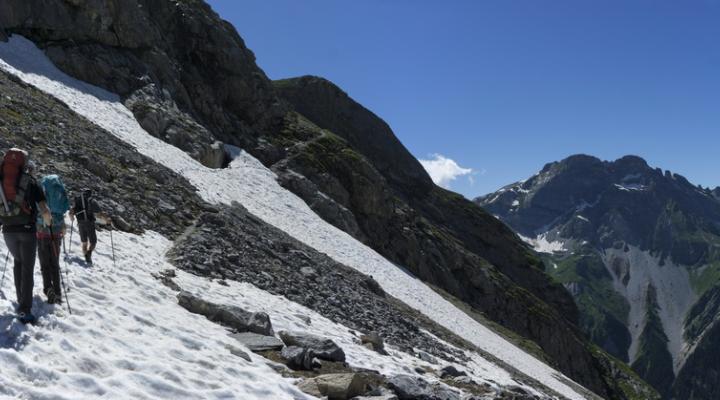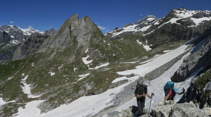 Traversée de la Vanoise : Le glacier de Pramort et la montée au refuge de Plaisance.