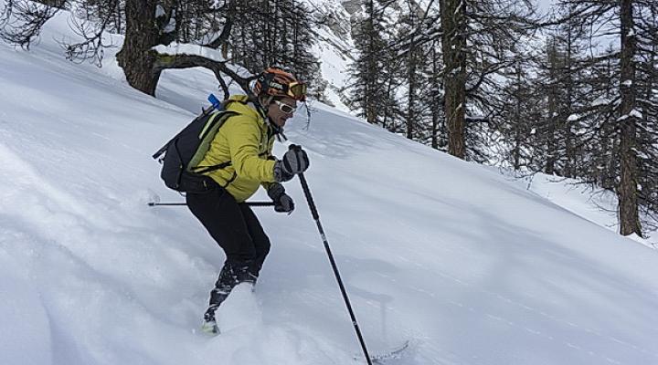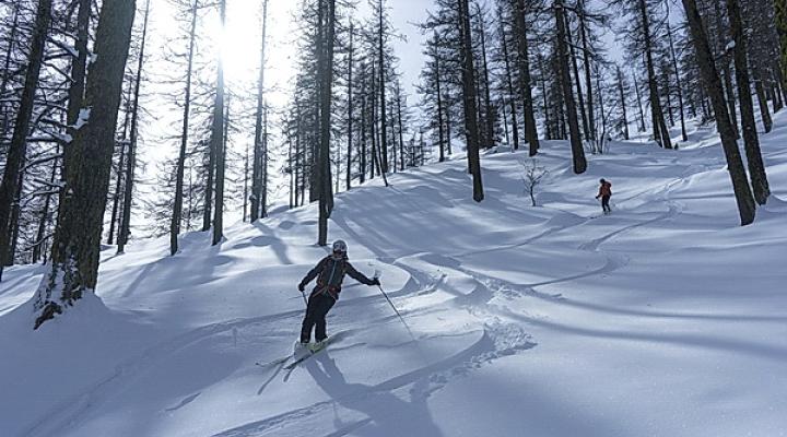 Ski magique dans ces forêts de mélèzes clairsemés, qui conservent la neige poudreuses en la protégeant du soleil et du vent.