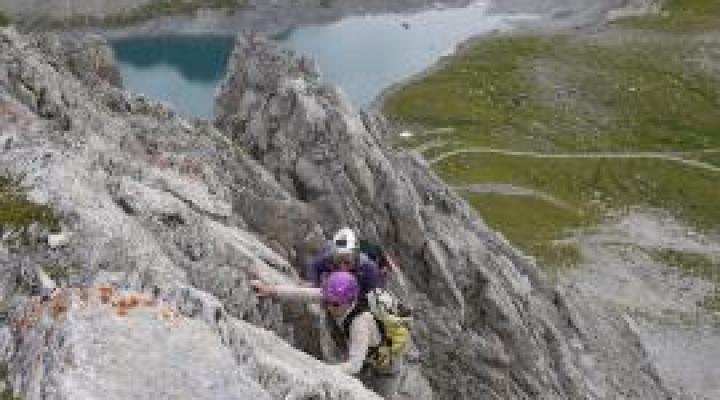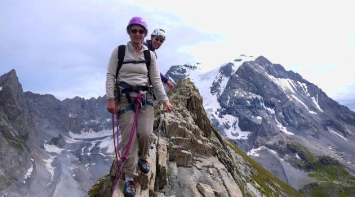 Après quelques heures en école d'escalade, nous voici au sommet de l'aiguille de la Vanoise. Magnifique course d'arête accessible rapidement après quelques séances d'escalade mais qui ne laissera pas indifférent les plus aguerris!! Magnifique vue sur la Grande Casse et les Glaciers de la Vanoise. Bravo à Claire et Sonia qui n'ont pas tremblé!!