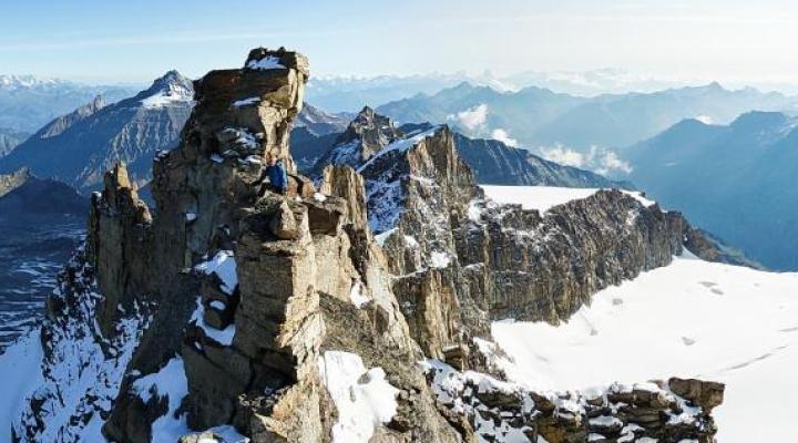 Une magnifique course d'arête très complète en altitude : pente de neige, gendarmes rocheux, arêtes neigeuses effilées, le tout entre 3700m et 4060m.