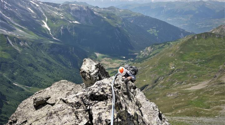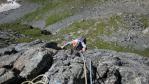 Escalade en Vanoise avec Laurent. La voie des Lépreux sur la falaise de Pontamafrey en Maurienne. Une escalade très variée, dalle, dièdre, surplomb, traversée gazeuse.. La descente à pied par la gorge est magnifique.